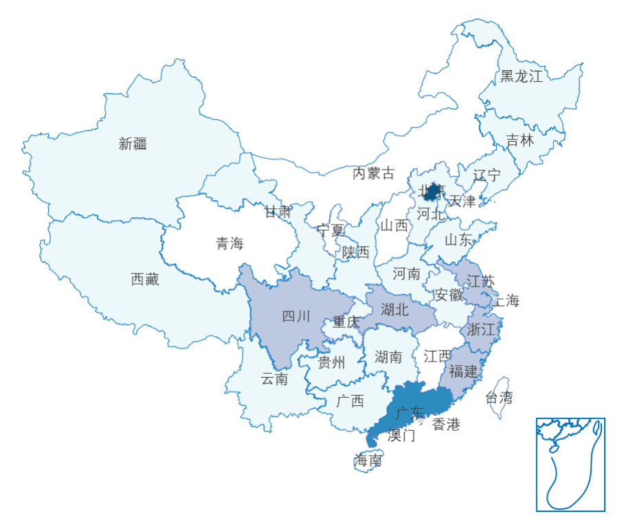 数据平安财产上市公司分布较为普遍,次要集中于和广东,二者占比总和超50%,此中55家,广东32家;除此之外,东部沿海及四川、湖北分布也较多。