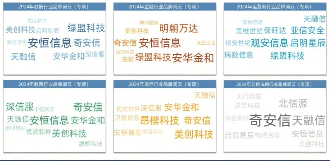 具体到数据平安财产正在分歧范畴的品牌热度,行业安恒消息从导,绿盟科技、奇安信等跟进;金融行业安恒消息、安华金和凸起;运营商行业不雅安消息、启明星辰、亚信平安领先;教育行业安恒消息、服、奇安信为从;医疗行业昂楷科技、美创科技等为焦点;司奇安信、天融信等从导。