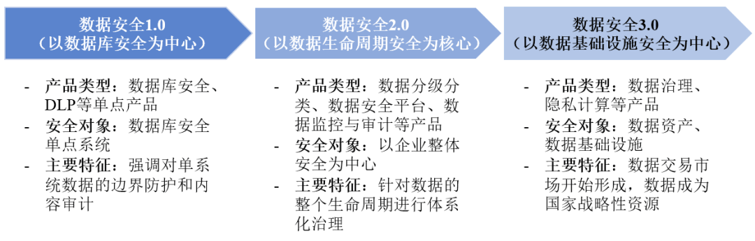 数据平安行业履历了以数据库平安为核心、以数据生命周期平安为焦点、以数据根本设备平安为焦点三个阶段,表现了从局部到全流程再到国度计谋层面的演变逻辑。