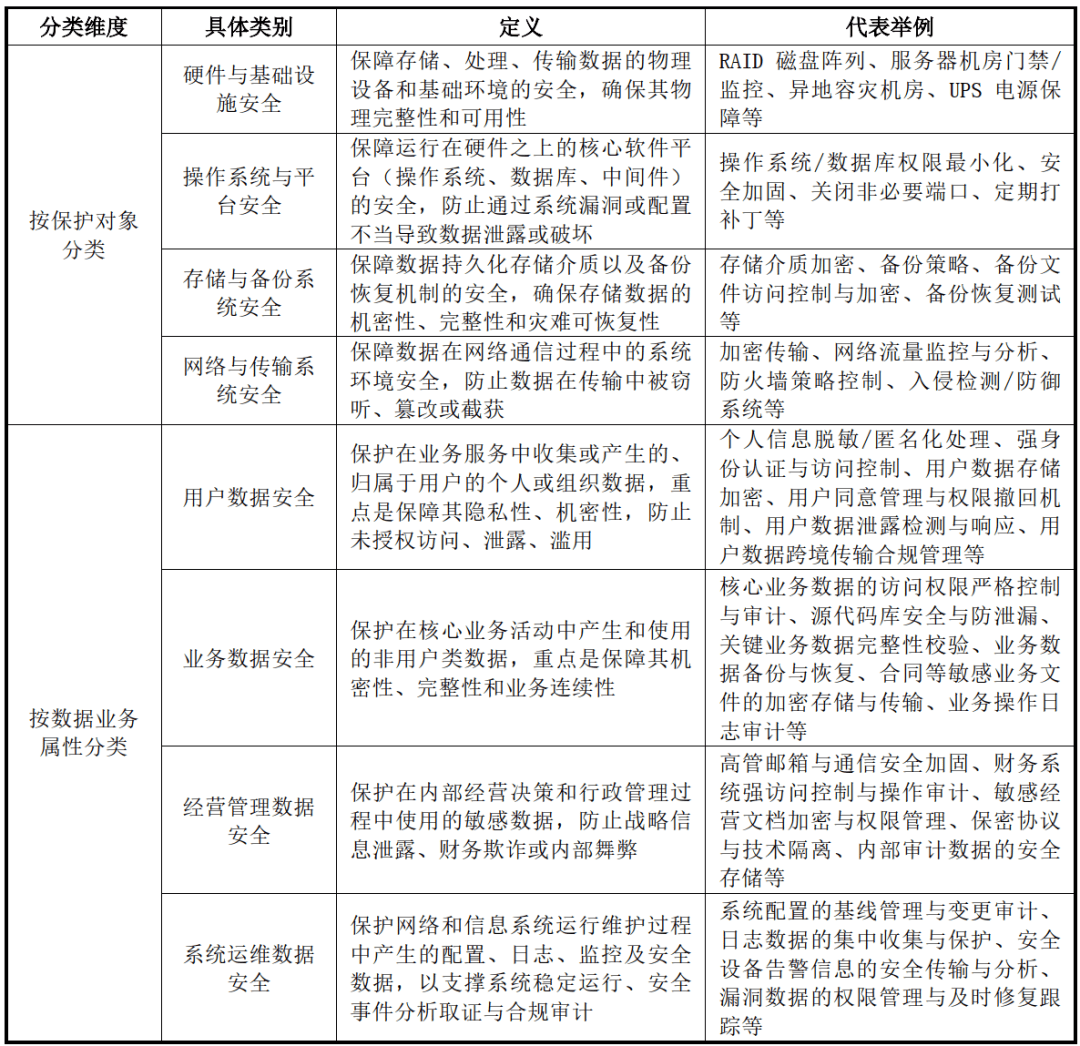 从对象划分,可分为硬件取根本设备平安、操做系统取平台平安、存储取备份系统平安、收集取传输系统平安;从数据营业属性划分,可分为用户数据平安、营业数据平安、运营办理数据平安、系统运维数据。