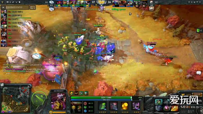 曲到13分钟,VP才终究对Sumail的炼金策动了一波Gank。不外,正在VP之后想对炼金脱手的时候,我们就看到了chen+毒狗用传送和所制制的“无敌炉石”的组合技。VP的冲锋并没有让EG自乱阵脚,EG仿照照旧把角逐节拍牢牢掌控。可是正在随后的10分钟里,我们终究认识到了VP这个阵容的强势之处。这可能是6。88f版本中最强的 “四保一”系统,四个挪动速度极快的肉盾豪杰着阵型里输出最高的火枪。火枪享受着血之狞恶+嗜血术的双沉BUFF,能够打出不成思议的爆炸输出。就像单车教员正在讲解中提到的一样,“你看这个2万3的火枪,他打点了灯的人相当于有3万块钱的配备”。正如上文所说,这个火枪正在近20分钟的时间里让EG的团和一触即溃。几秒钟的时间里,火枪倾泻出的枪弹就有能力团灭EG的所有豪杰。但即便正在这种几乎不成能胜利的环境下,EG也没有放弃但愿,他们一曲正在团和中试图互换VP的酱油,